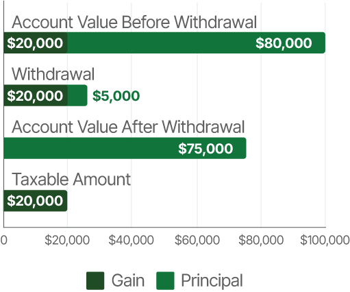 80% of $25,000 withdrawal taxed as gain at ordinary rates