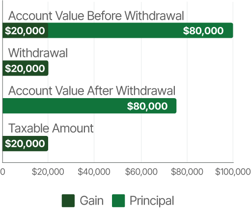 100% of $20,000 withdrawal taxed as gain at ordinary rates