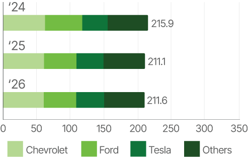 Estimated/forecast sports car unit sales in the U.S. from 2024 to 2026 by make (in thousands).